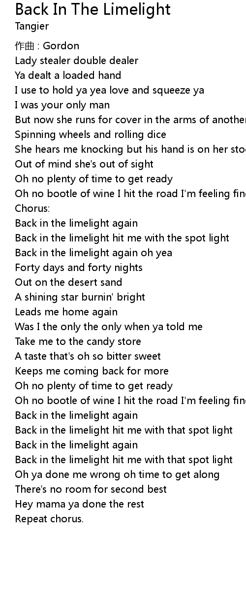 | Back in the limelight hit me with the spot light | |