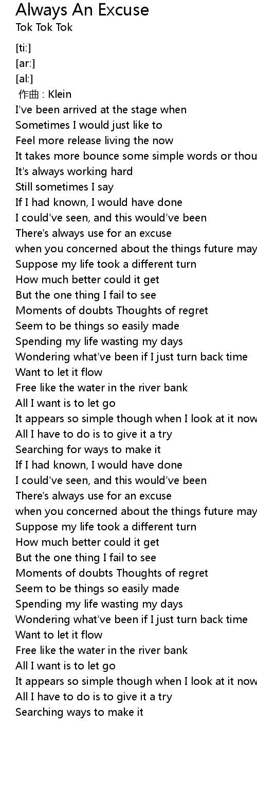 | [00:48.98] | There' s always use for an excuse |