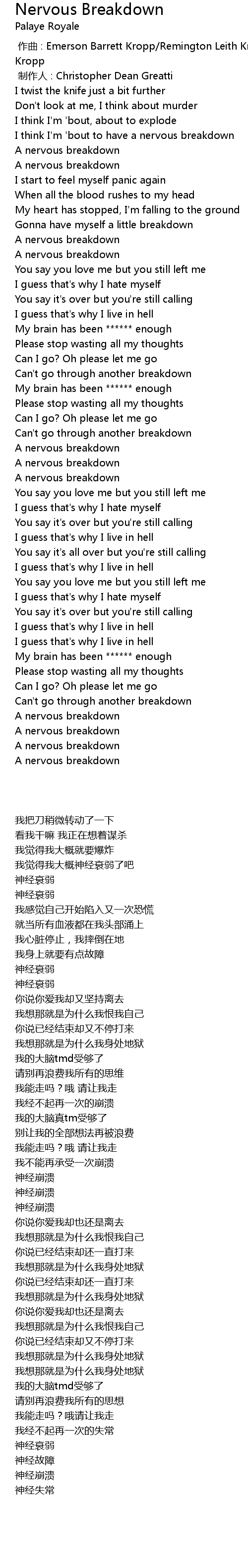 | 歌曲 | Nervous Breakdown |