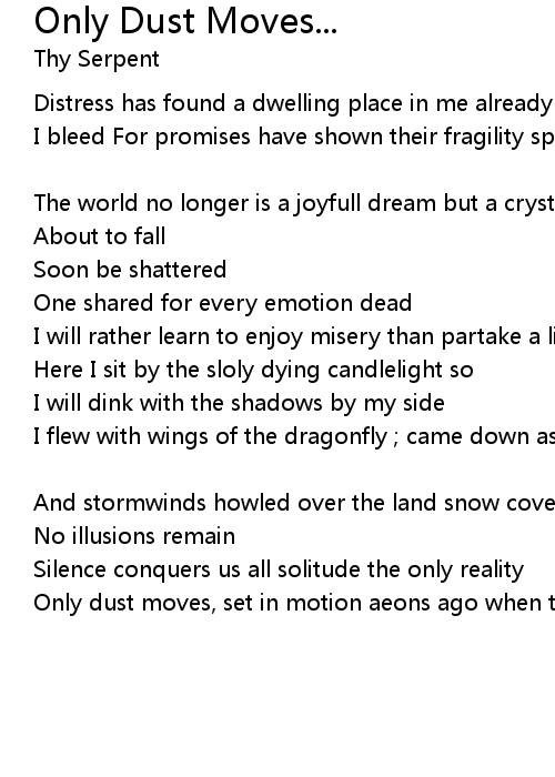 Only dust moves, set in motion aeons ago when there was still life in this world |