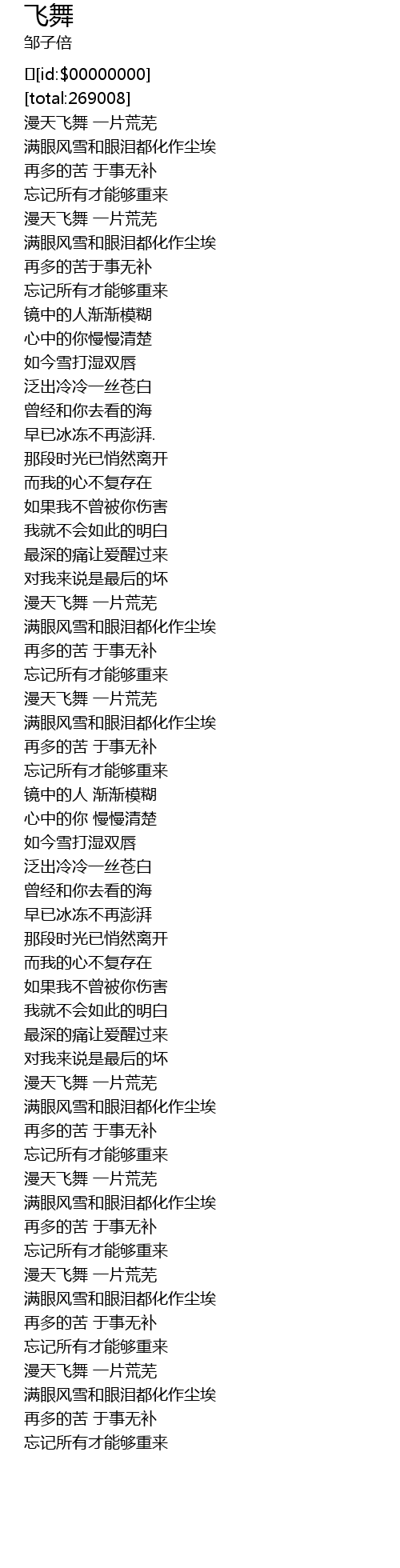 | [03:03.758] | màn tiān fēi wǔ yī piàn huāng wú |