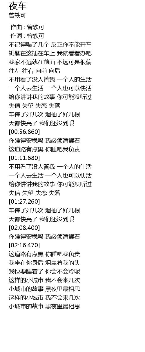 | [03:00.340] | 小城市的故事 黑夜里最相思 |
