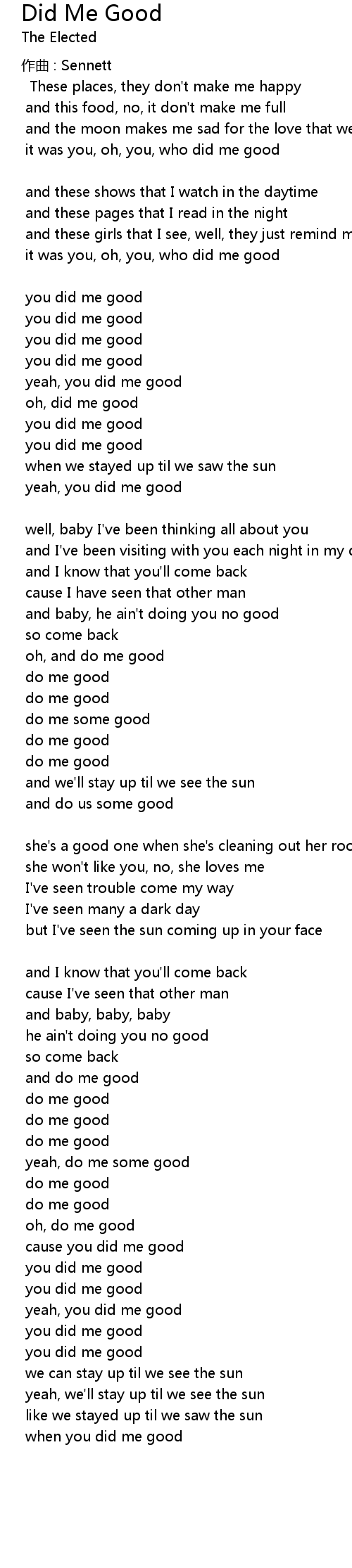 | 歌曲 | Did Me Good |