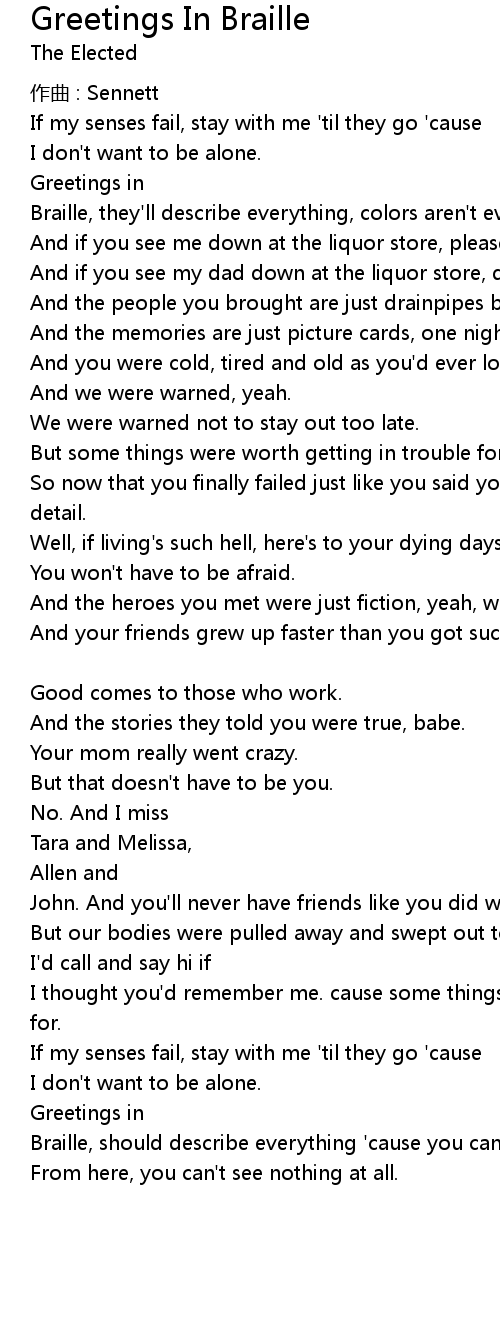 | 歌曲 | Greetings In Braille |
