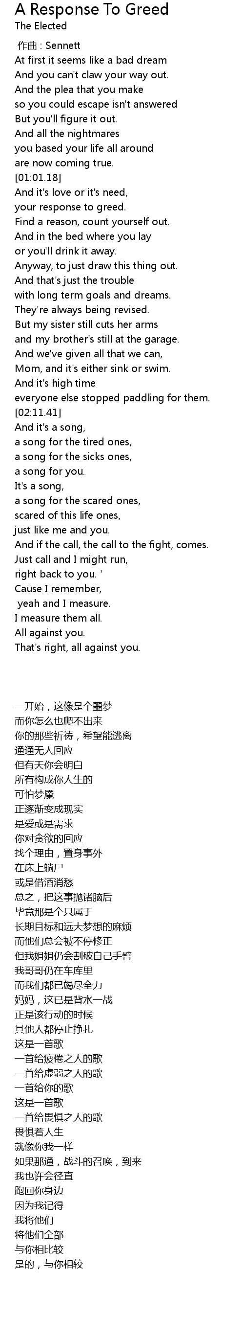 | 歌曲 | A Response To Greed |