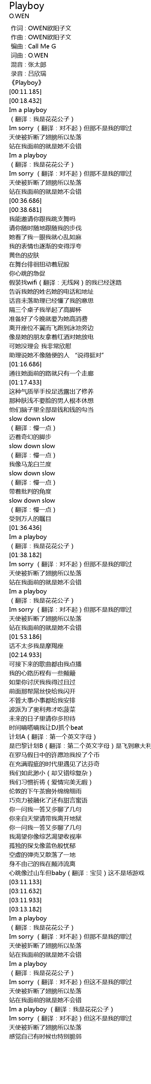 | [03:30.882] | Im a playboy fān yì: wǒ shì huā huā gōng zǐ |