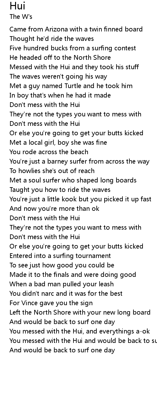 You messed with the Hui and would be back to surf one day...