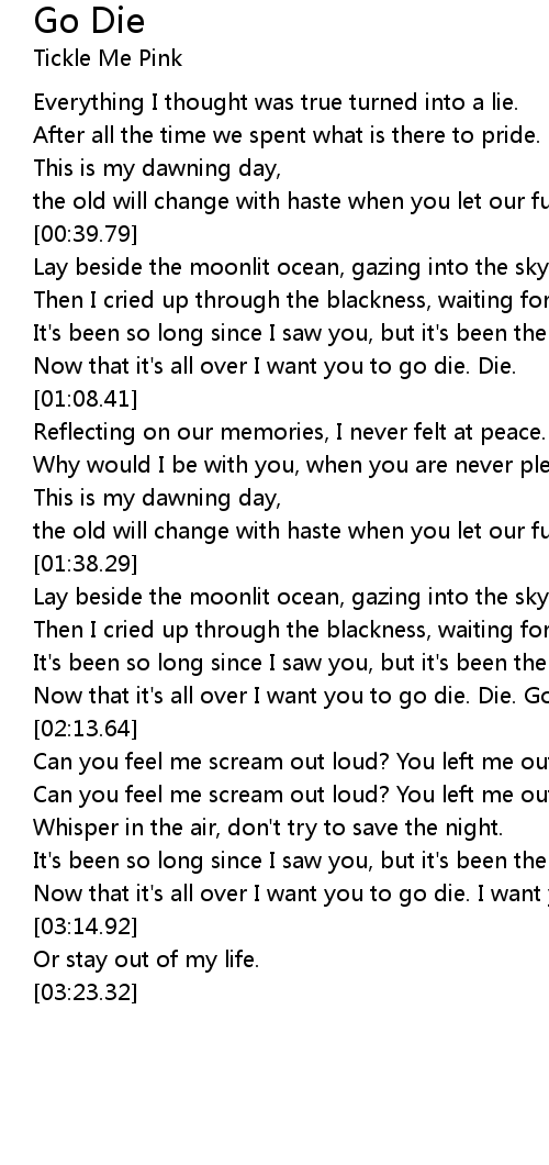 Now that it's all over I want you to go die. Die. Go die, die. |