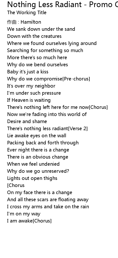 | 歌曲 | Nothing Less Radiant - Promo CD |