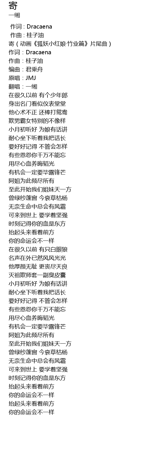 | [00:00.00] | 寄(动画《狐妖小红娘·竹业篇》片尾曲) |