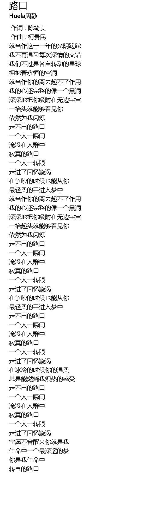 | 歌曲 | 路口 |