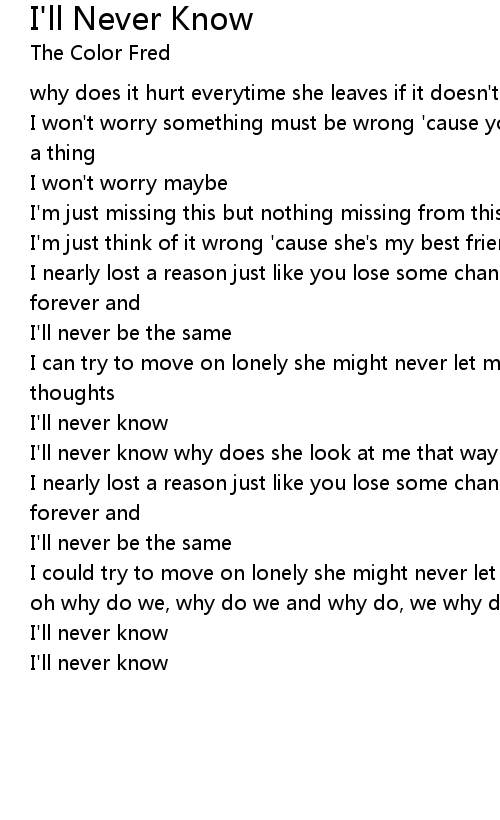 I could try to move on lonely she might never let me go and why do we, why do we oh why do we, why do we and why do, we why do we why do we have these thoughts |