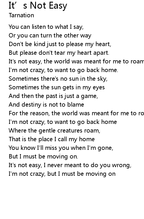 It's not easy, the world was meant for me to roam, |