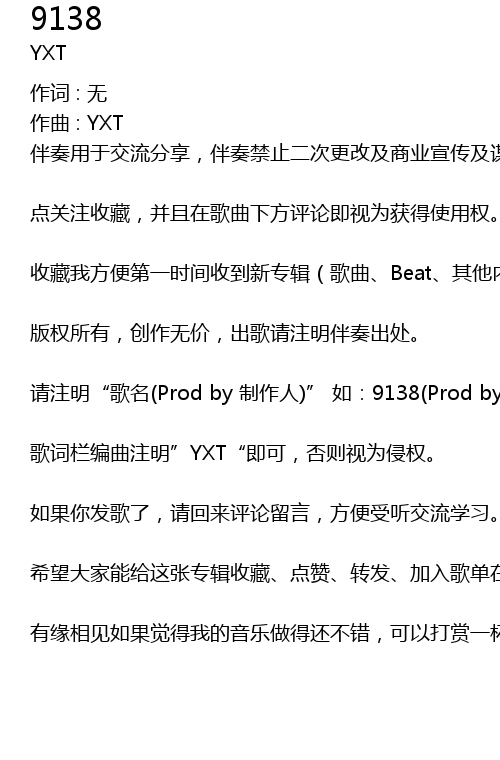 歌词栏编曲注明”YXT“即可,否则视为侵权。