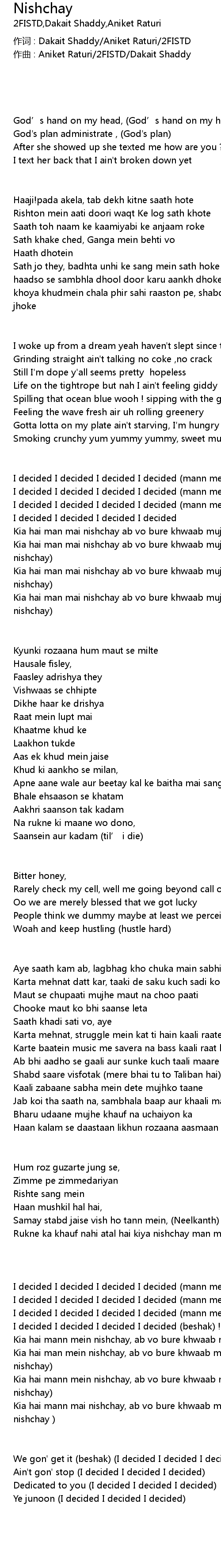 | 作词 : Dakait Shaddy/Aniket Raturi/2FISTD | |
