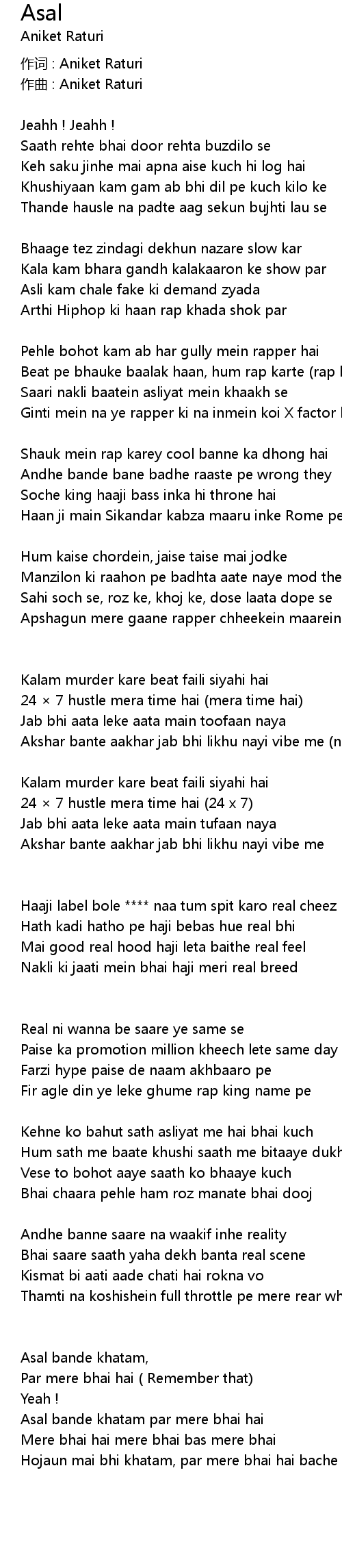 | Asal bande khatam par mere bhai hai | |