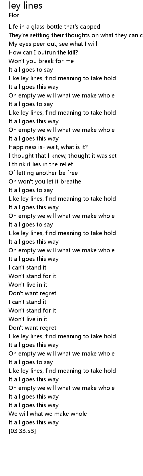 | [00:46.59] | Like ley lines, find meaning to take hold |