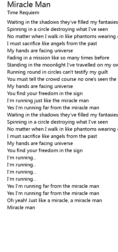 Oh yeah! Just like a miracle, a miracle man |