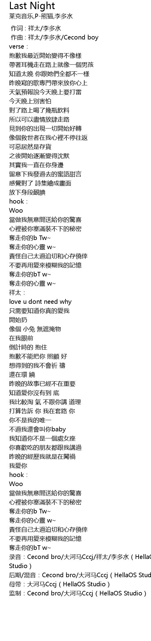 | [02:53.343] | 后期/混音:Cecond bro/大河马Cccj(HellaOS Studio) |