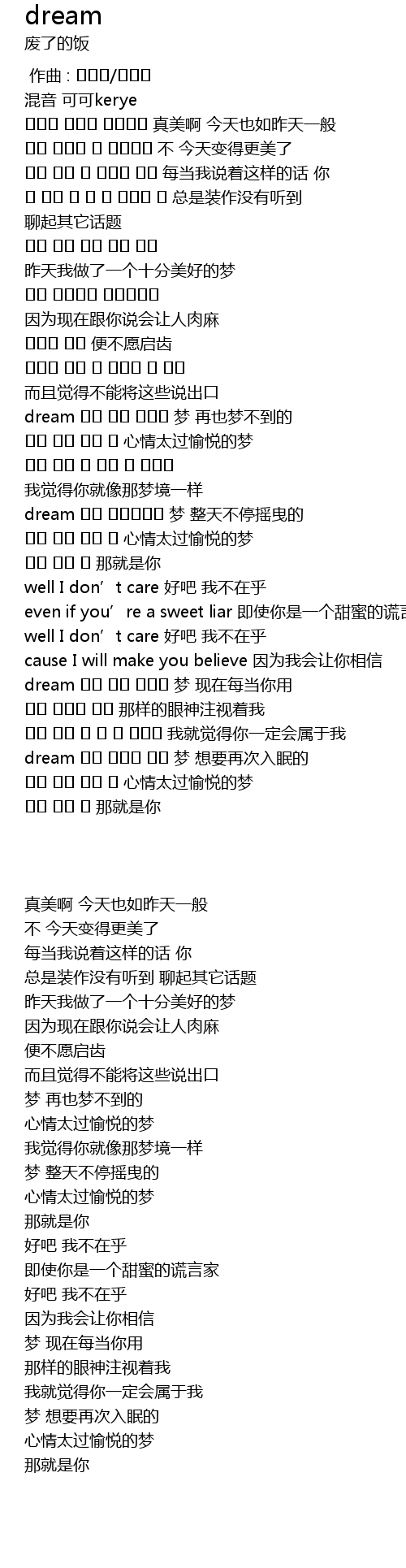 | [00:59.288] | dream 다신 꾸지 못하는 梦 再也梦不到的 |