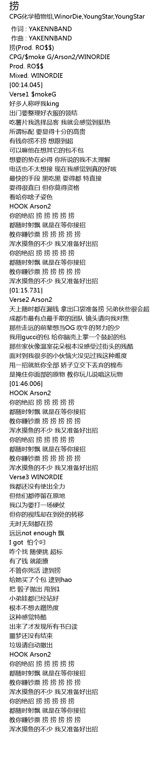 | [02:10.307] | 教你赚钞票 捞 捞 捞 捞 捞 |