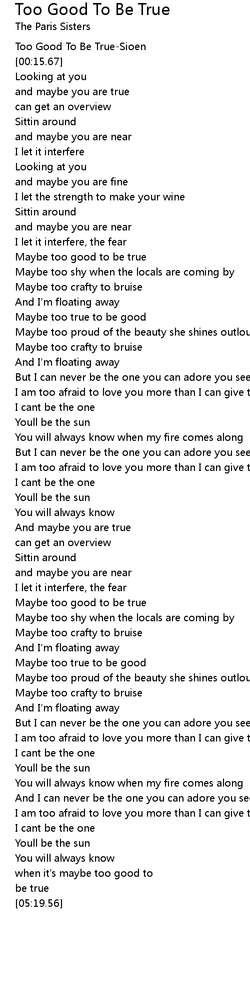 Too Good To Be True-Sioen |