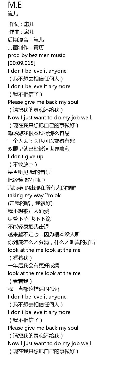 | [00:13.027] | I don' t believe it anyone |