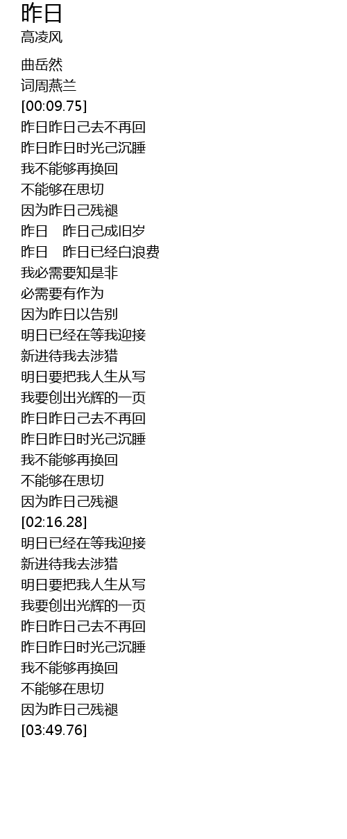 | [01:43.38] | 昨日昨日己去不再回 |