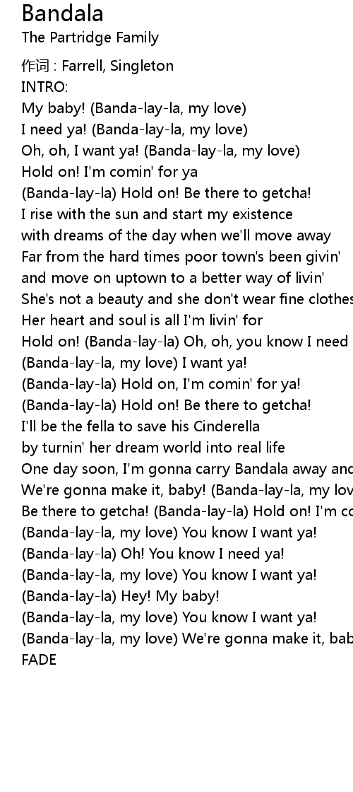 | Bandalayla, my love We' re gonna make it, baby! | |