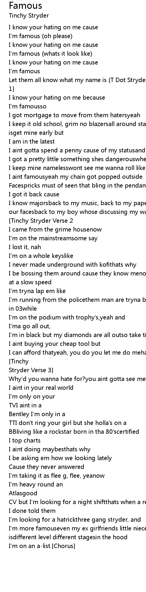 I'm more famouseven my ex girlfriends little niece knows what my name isdifferent level different stagesin the hood |