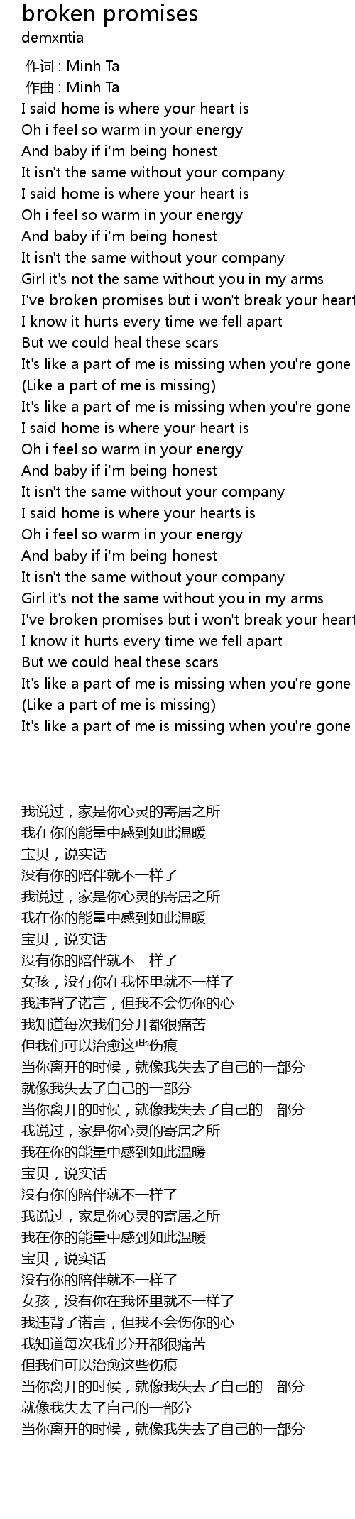 | [00:43.89] | I' ve broken promises but i won' t break your heart |
