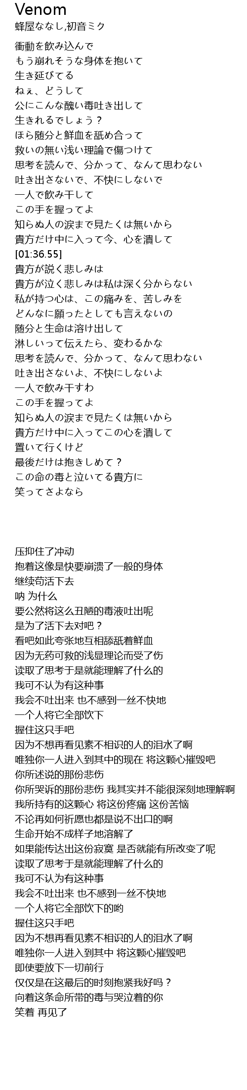 | [03:09.33] | 向着这条命所带的毒与哭泣着的你 |