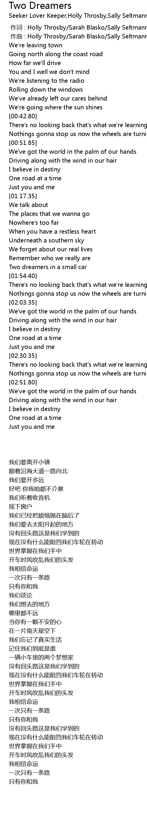 | [01:51.64] | 一辆小车里的两个梦想家 |