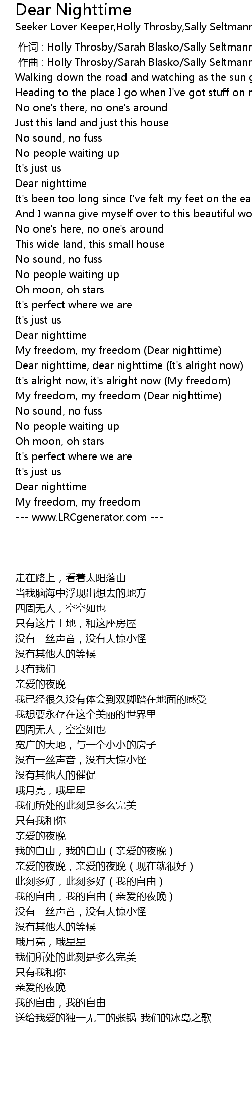 | [02:49.87] | Dear nighttime, dear nighttime (It's alright now) |