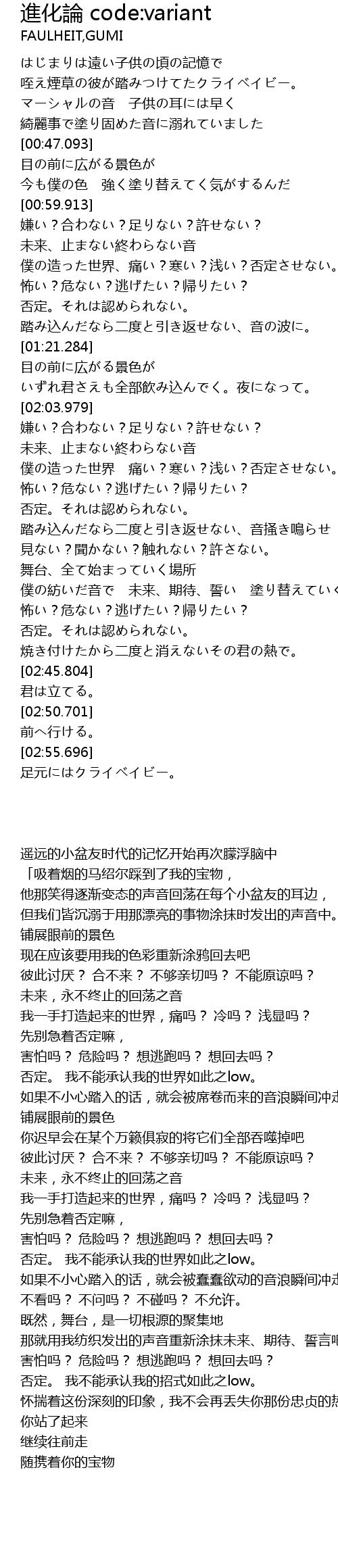 | [02:28.916] | 那就用我纺织发出的声音重新涂抹未来、期待、誓言吧 |