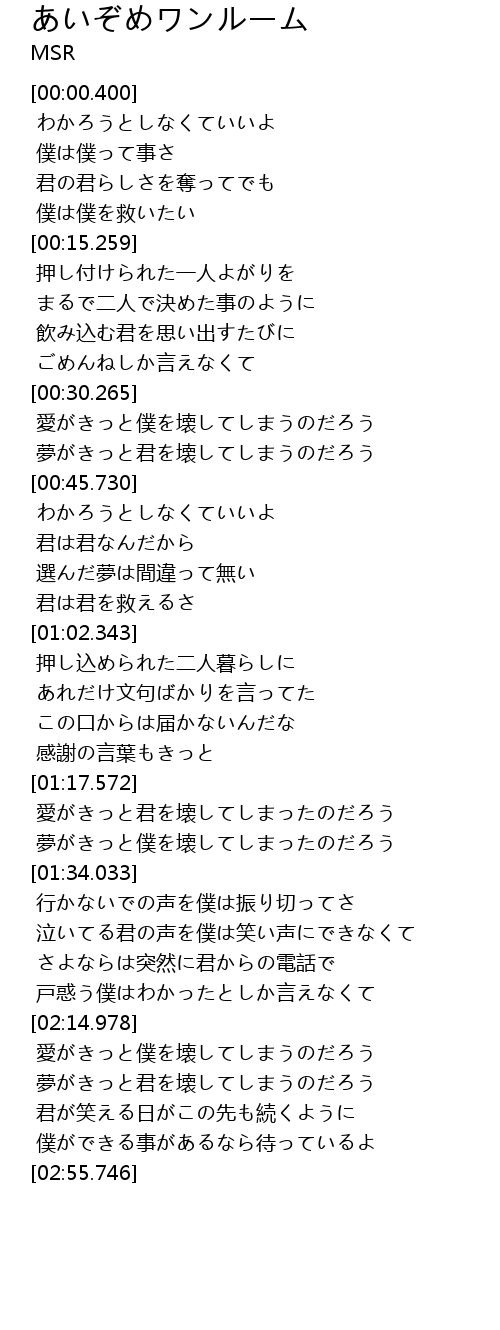 | [02:15.665] | 愛がきっと僕を壊してしまうのだろう |