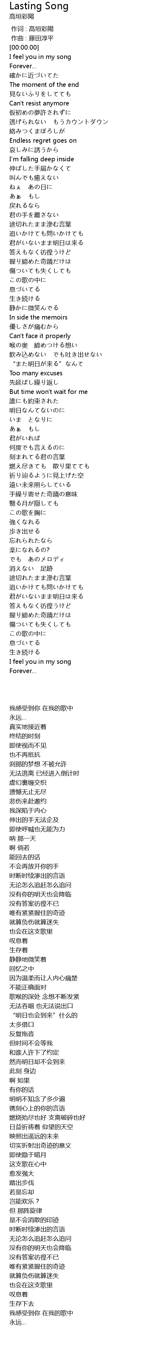 | 歌曲 | Lasting Song |
