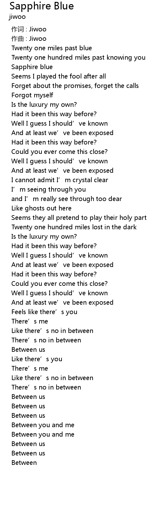 | [00:38.697] | Twenty one hundred miles past knowing you |