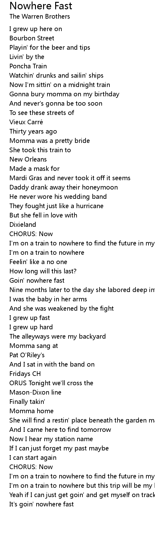 | Yeah if I can just get goin' and get myself on track off this train to nowhere | |