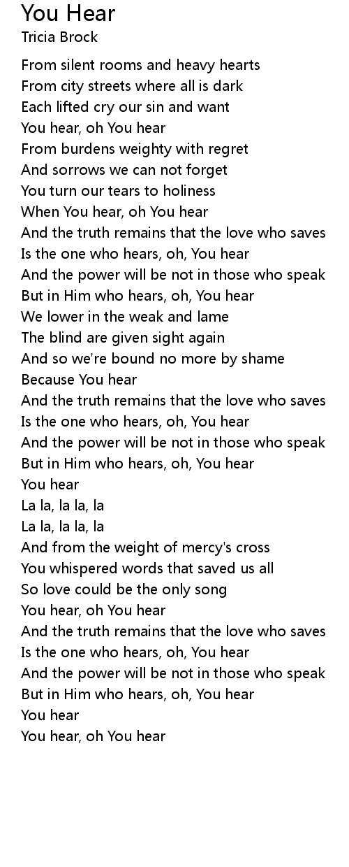 You hear, oh You hear |