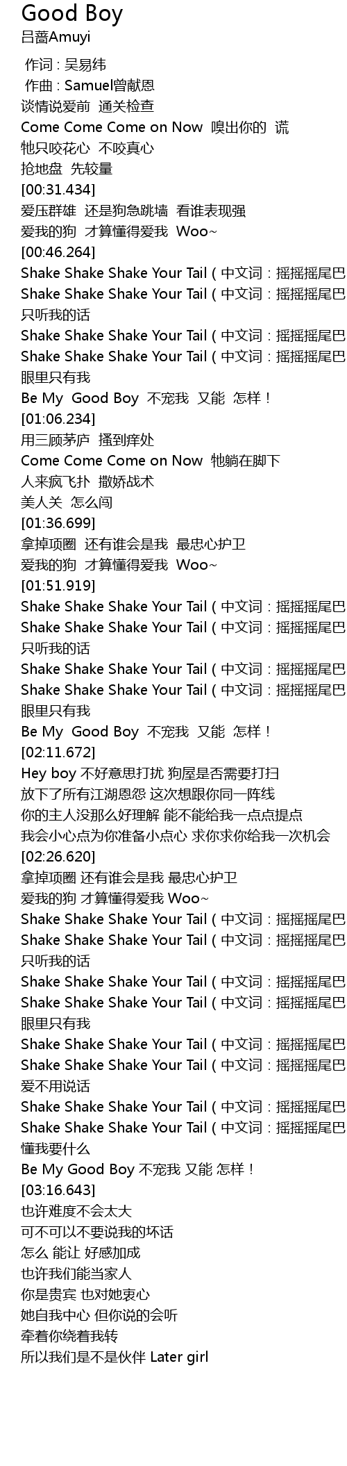 | [03:12.875] | Be My Good Boy bu chong wo you neng zen yang! |