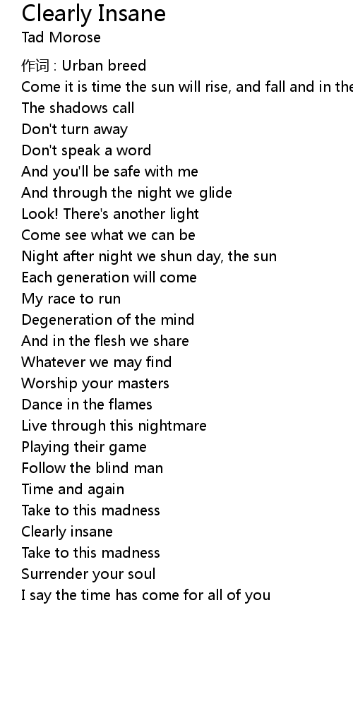 | 歌曲 | Clearly Insane |