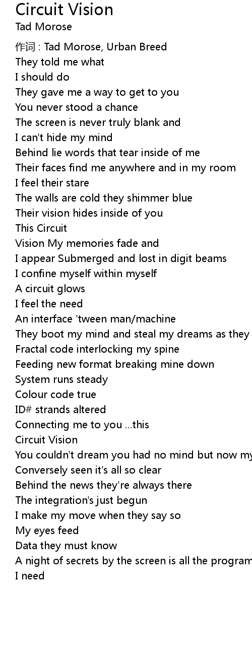 | You couldn't dream you had no mind but now my eyes see only what you feed me | |