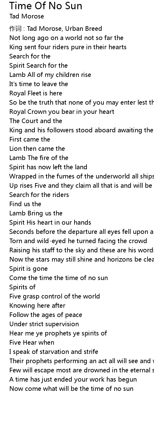 | 歌曲 | Time Of No Sun |