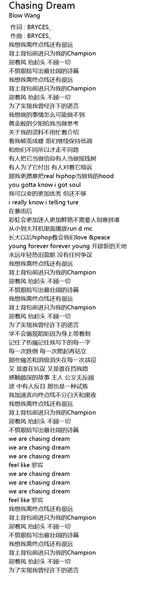 | [01:39.559] | 背上背包前进只为我的Champion |
