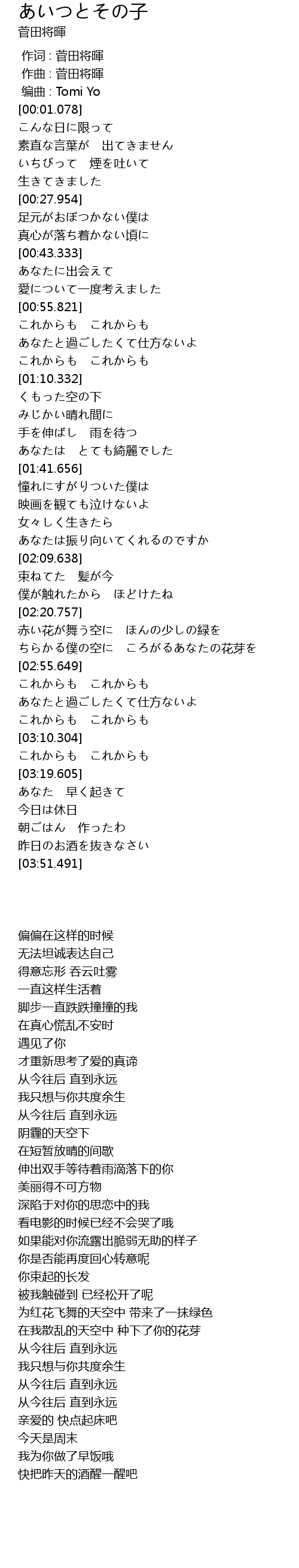 | [00:00.718] | biān qǔ : Tomi Yo |