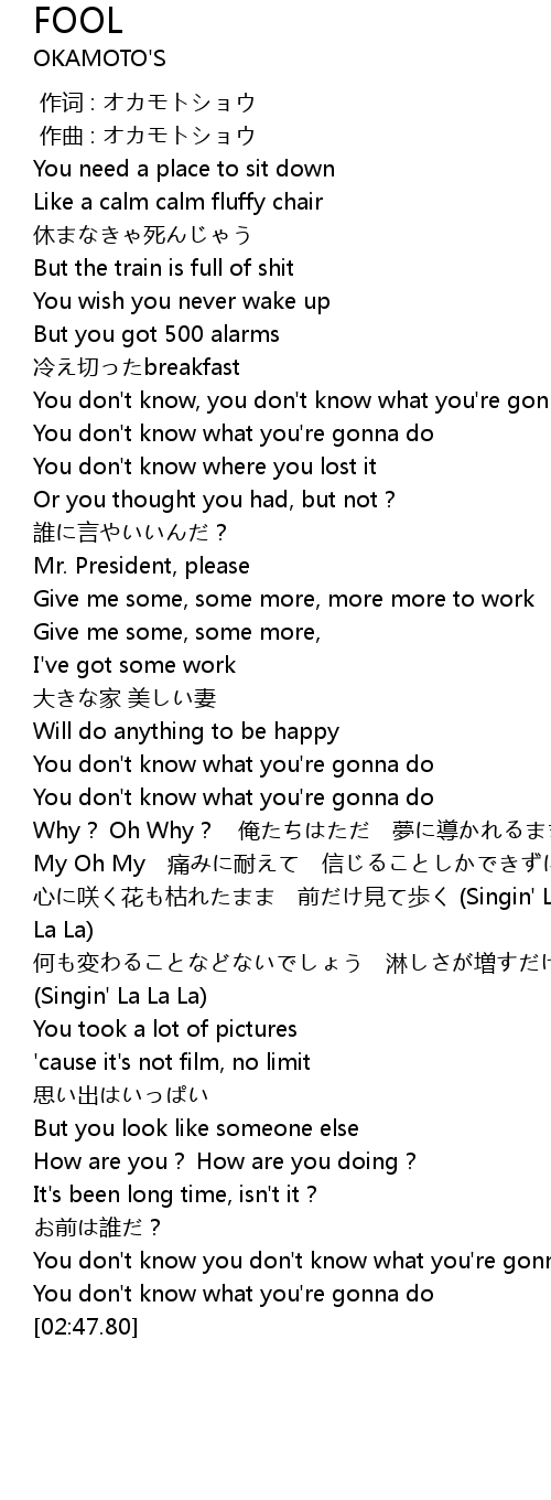 | [02:31.84] | You don't know you don't know what you're gonna do |
