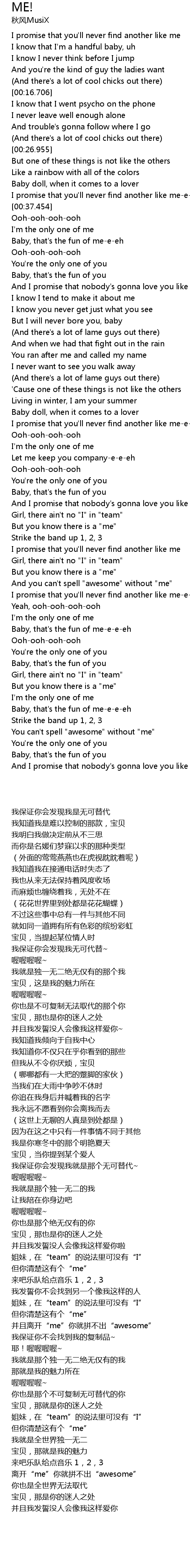 I promise that you'll never find another like me-e-e-eh |