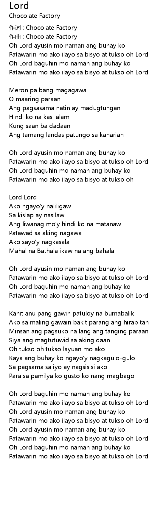 | Patawarin mo ako ilayo sa bisyo at tukso oh Lord Lord |