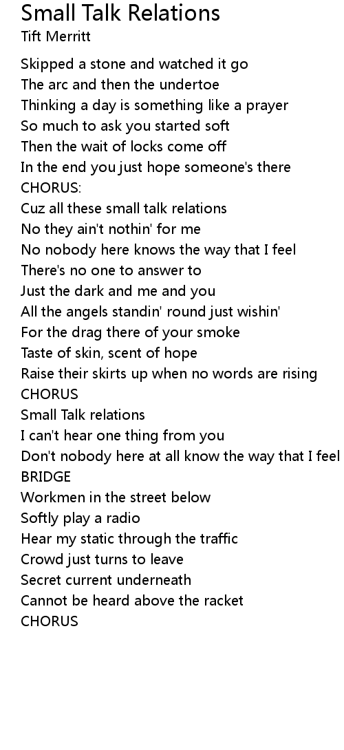 Cuz all these small talk relations |